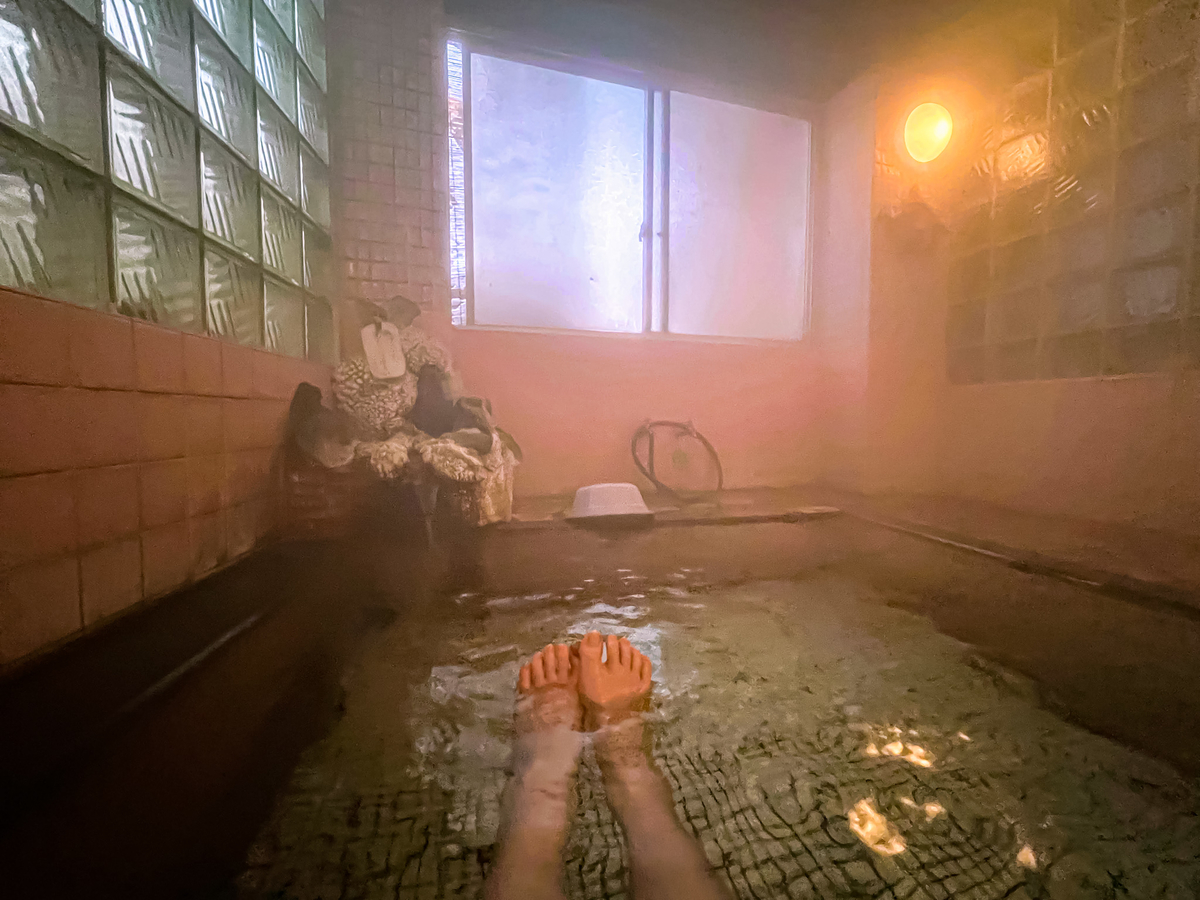 もう1箇所、男性用の浴室はこのさらに奥にあるようです。浴室の男女交代はありません。夜通しの入浴が可能です!