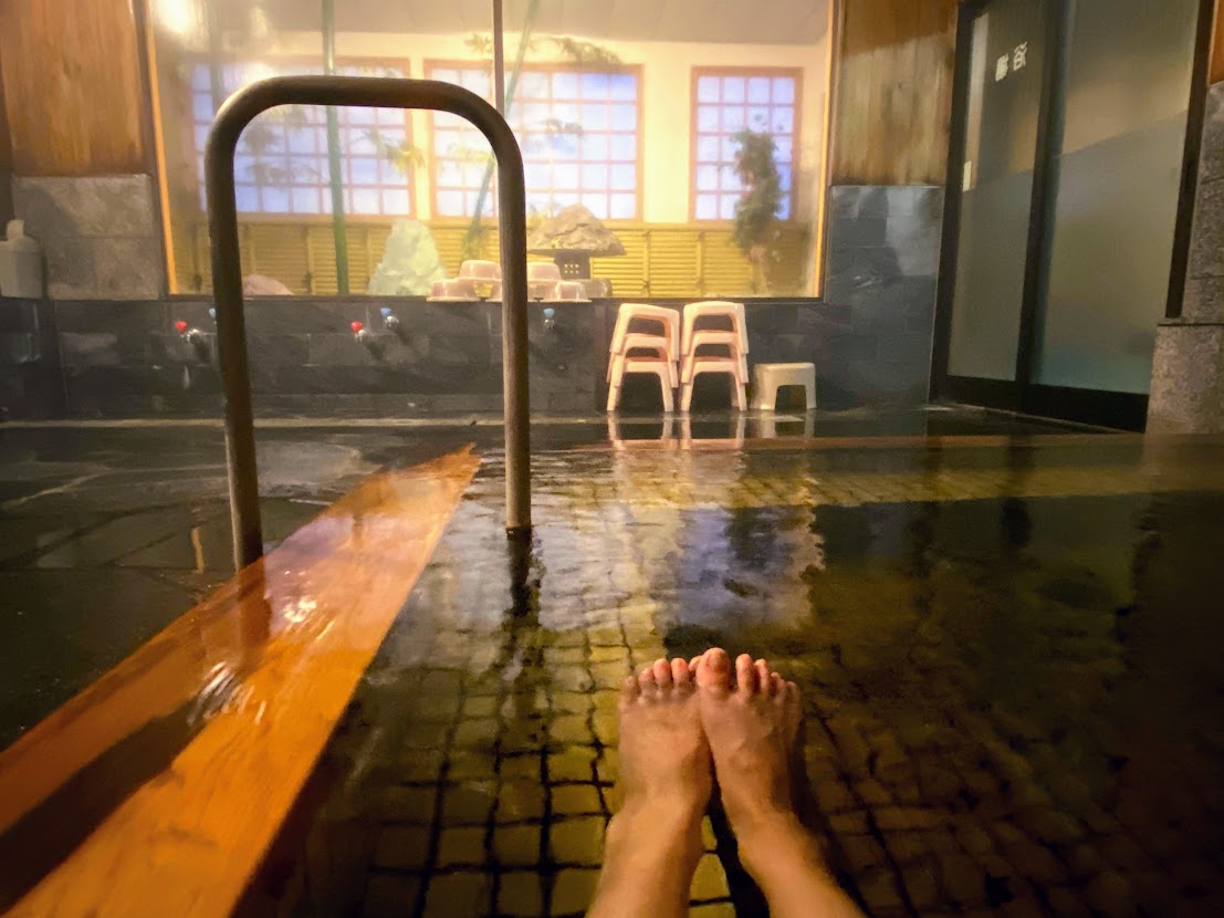 脱衣所には「深夜0時に浴室の入れ替えがある」と書かれていましたが、特に口頭での説明もなくのれんも入れ替わっていなかったので、ケースバイケースなのか……現在は入れ替えなしなのかもしれません。