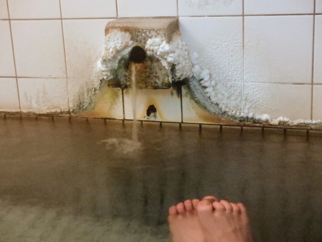 湯口には温泉の成分がびっしりとついており、熱めですが真冬ということもあって気持ちよく浸かれました。