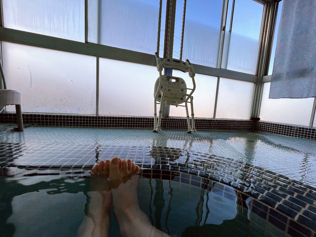 こちらも熱めのモール泉のかけ流し。開放感もあっていい感じの露天風呂でしたが、なぜか女性用の露天風呂は「12月~4月中旬まで利用不可」との記載が予約サイトにありました。なので女性の方は、冬の間はひば風呂に近い別館に泊まったほうが良いかもしれませんね。