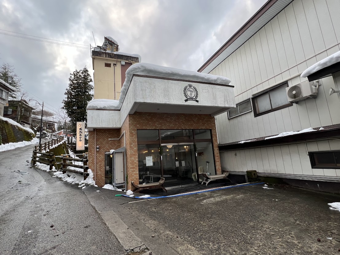 上越線小出駅からバスで30分ほど、外観は新しいとは言えない友家ホテルにたどり着く