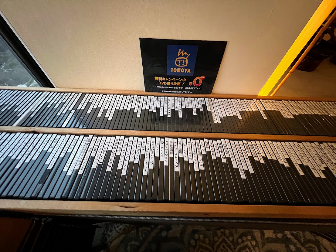 客室の前に、ロビーの奥にあるDVDレンタルスペースをご紹介したいと思います。