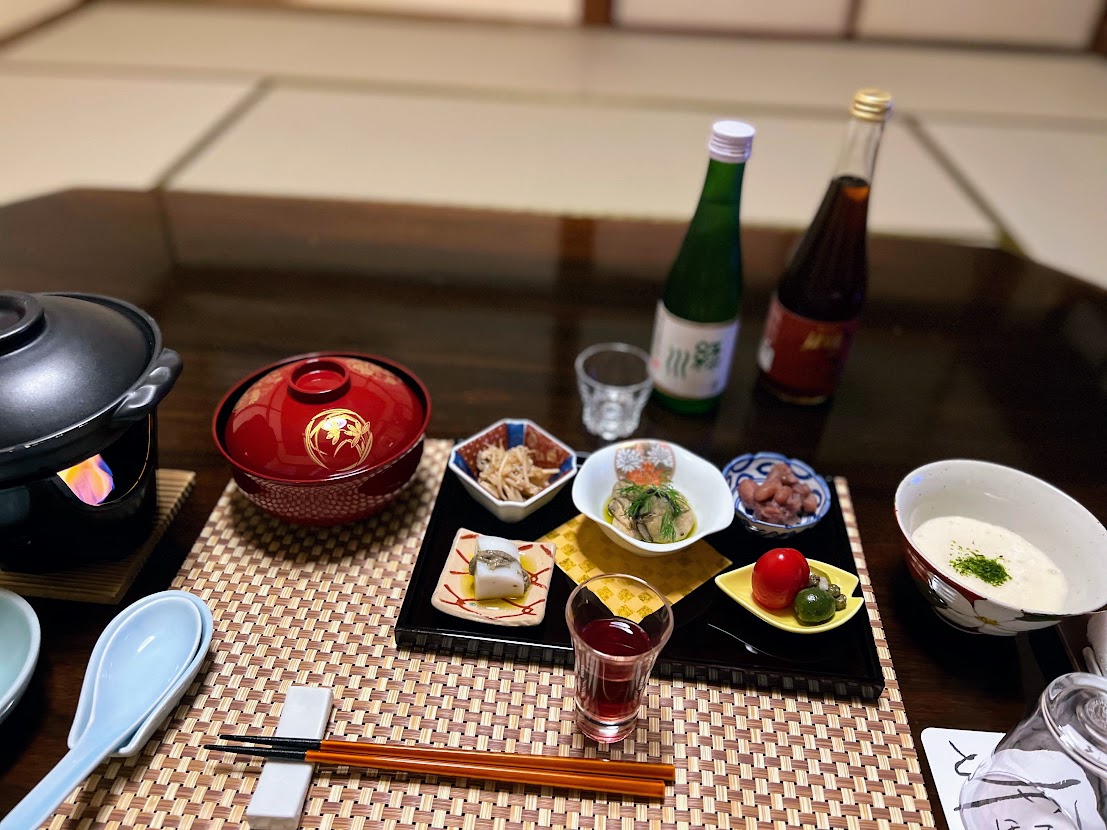 今回も鍋とお椀と前菜、食前酒、あとはすりおろした「自然薯」が最初に提供されました。