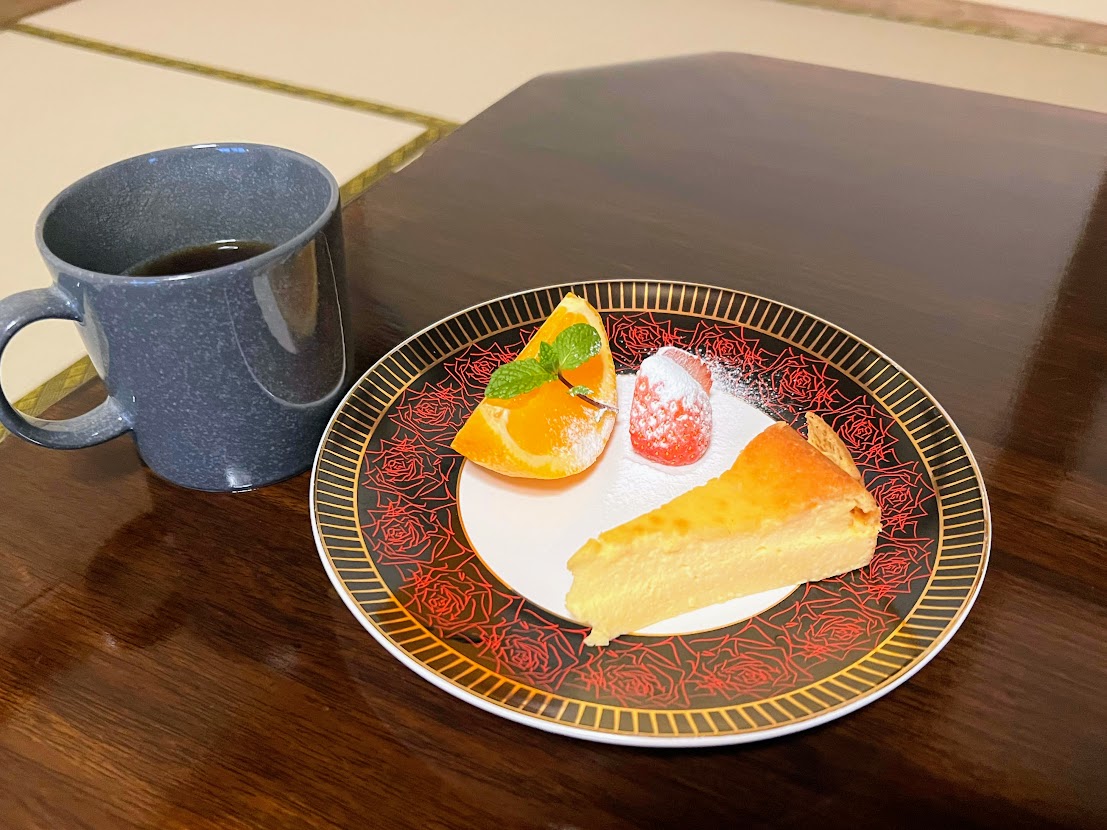 今回も、デザートはチーズケーキ。こちらもおいしくいただきました。